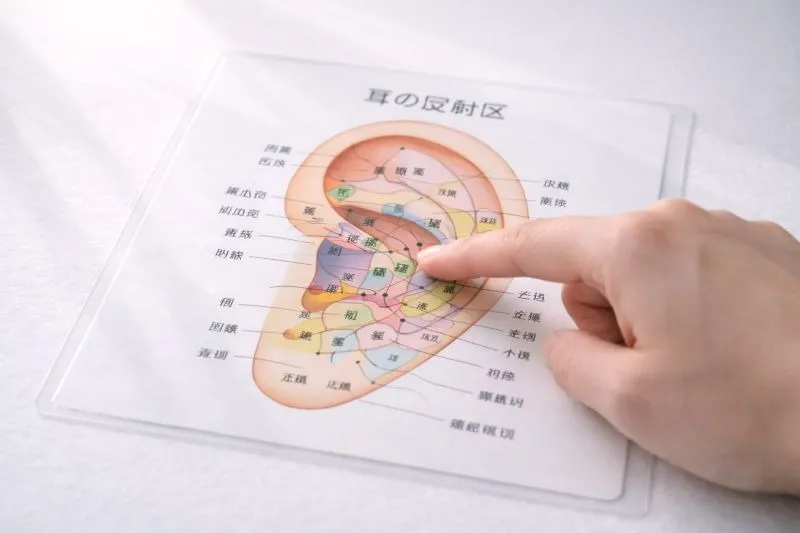 耳には全身の臓器・器官に対応した「反射区」が存在するとされています。この考え方は東洋医学に由来し、耳の特定の点を刺激することで、対応する部位の血行促進や自律神経への作用が期待できます。