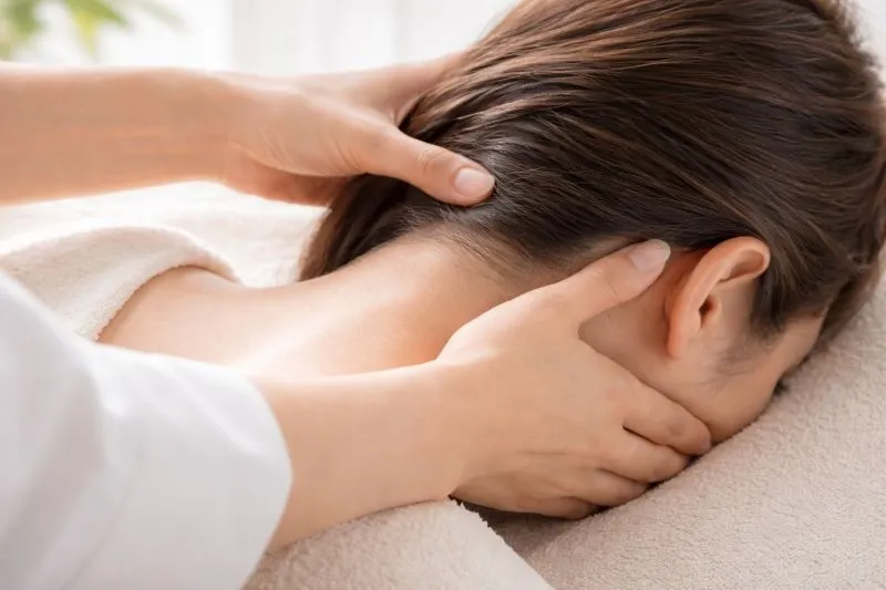 - 後頭部から首筋にかけて、リンパを鎖骨方向に流すようになでる(3往復)