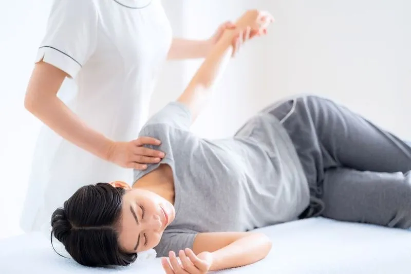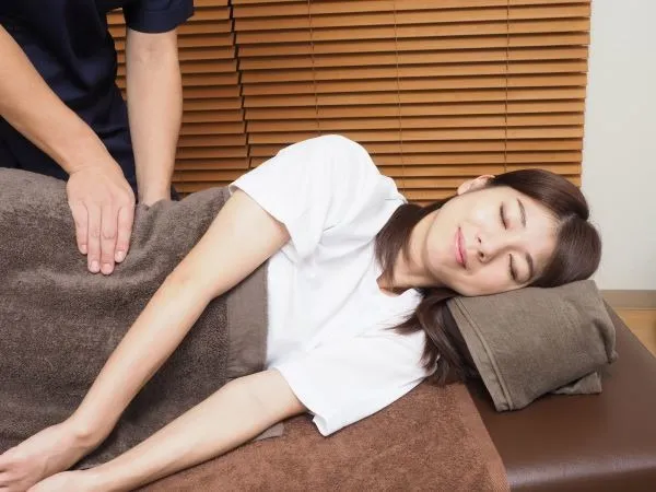 横向きの“楽な姿勢”で受けられるから、首や肩の筋肉が自然にゆるみ、やさしく深くコリにアプローチできます。